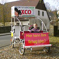 "Werbung mit Velomobil hat sich als außerordentlich erfolgreiche Art der Werbung erwiesen.