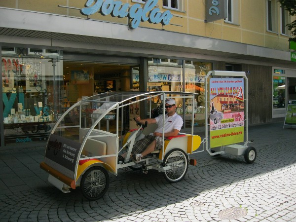 "Werbung mit Velomobil hat sich als außerordentlich erfolgreiche Art der Werbung erwiesen.